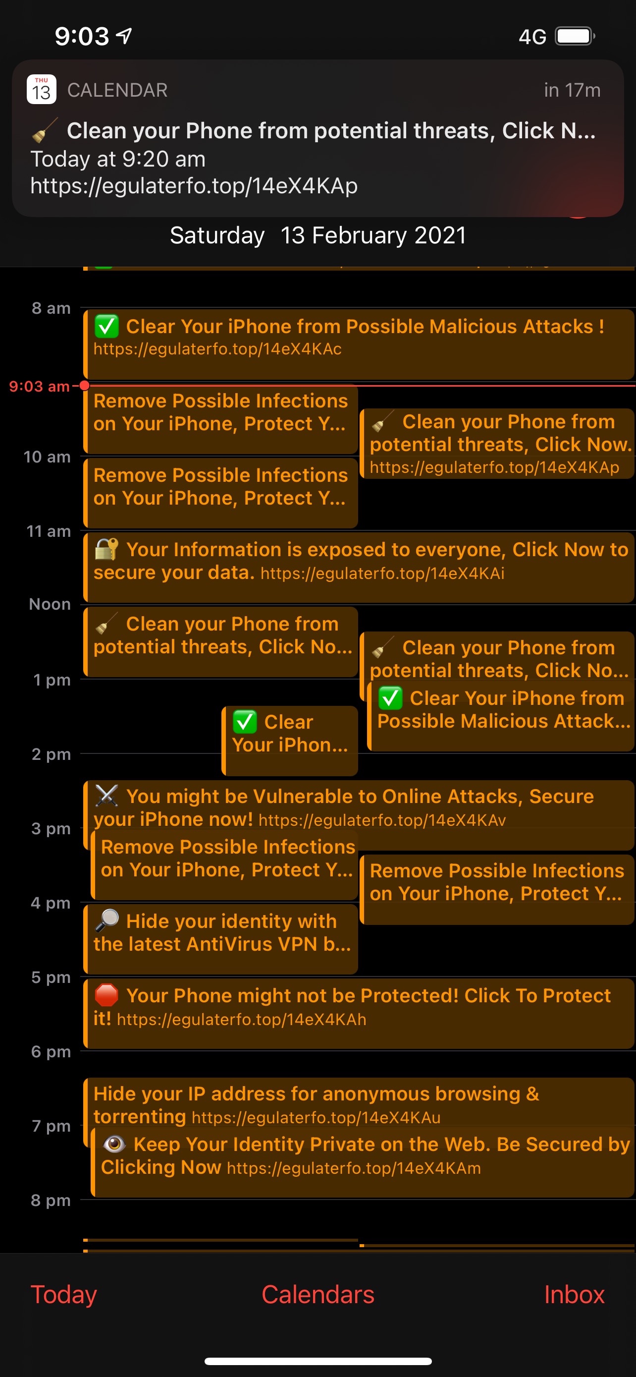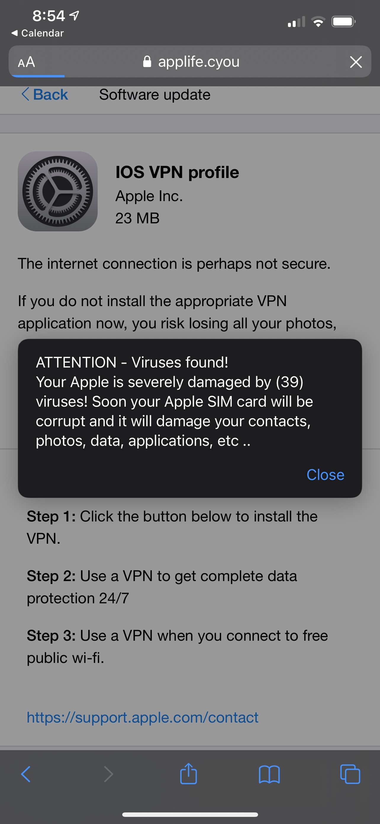 Apple security virus warning on iPhone Hello there So last night I was reading up on some wrestling news on my iPhone when suddenly the website redirected and I got two pop ups saying my phone has 6 viruses some Trojan the text is blocking the Trojans name and to download My Mobile Secure to remove viruses. The post How to Stop and Remove iPhone. Heres what you can do to get rid of invasive iPhone calendar spam.